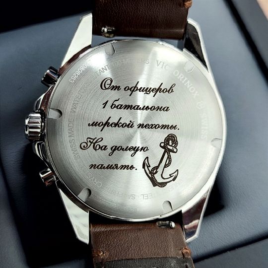 В зависимости от материала, дизайна, количества часов, их размеров и сложности исполнения гравировки цена меняется.
